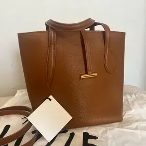 Our small version of the Sprout Tote featured with new penne inspired hardware. Crafted in grained calf leather and cotton lining. Comes with a detachable shoulder strap for added functionality.