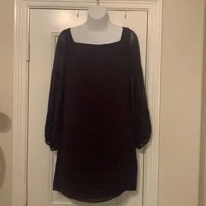 This stunning purple sheath dress features a flattering square neckline and long bishop sleeves that add a touch of elegance. Perfect for a night out, the dress is designed to fit closely at the bodice while flowing gracefully at the skirt.
