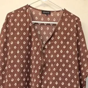 Stylish brown patterned top perfect for any occasion. Comfortable and chic, this top is a must-have in your wardrobe.