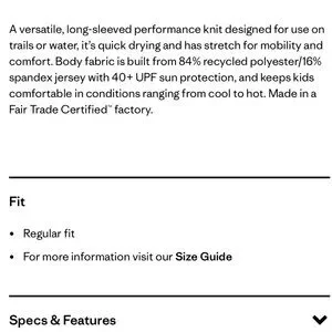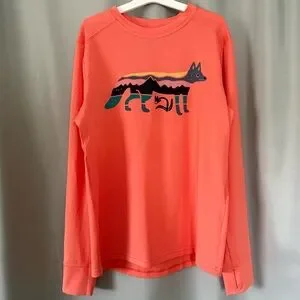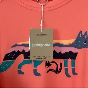 NWT Kids size large (12) Patagonia Capilene UPF Cool Silkweight Long Sleeve Shirt Coho Coral with Foxy Fitz image. No signs of wear or damage as shown in photos. Product info also shown in photos.