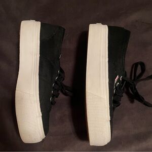 Superga’s signature aesthetic reaches new heights in these 2790 sneakers that pair the iconic silhouette with a 1.5 in platform. The breathable cotton canvas comfortable and sturdy.