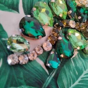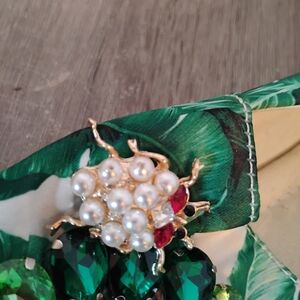 Emerald Green/White Tropical print-Glass Stones & Pearl Ladybug-Gorgeous!!Woven Toe area & around sides-Rubber Heel-Great condition-Fun Shoe-offers welcome