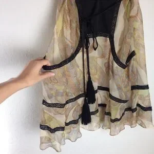🌙Women’s Zara Sheer Silk Paisley Cover Up Dress with Tassels✨