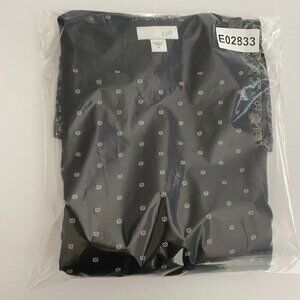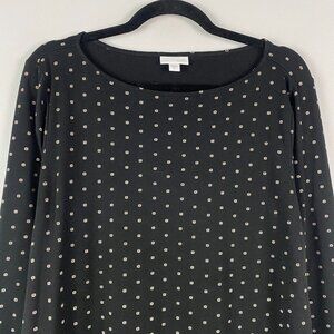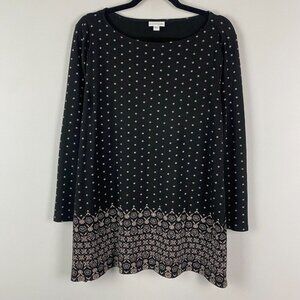 J Jill Black Ditsy Floral Bordered Hem Tunic Blouse Size XL Cotton Modal