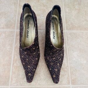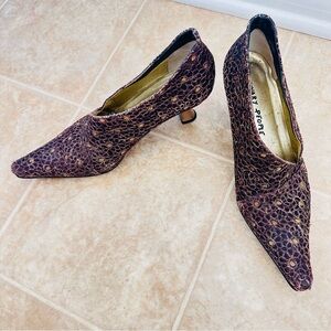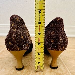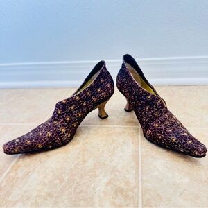 Vicini Gold and Purple Heels with Pointed Toe and Intricate Design