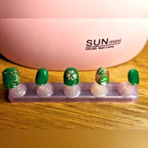 Hand Crafted Press On Nails 24pc St Patricks Day Short Oval Green n Gold