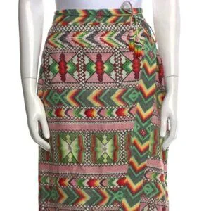 Farm Rio Yawanawa Amulet Multicolor Beaded Tassels Wrap Midi Skirt S (Orig.$210)