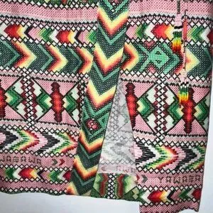 The combination of the green and light pink colors creates a fresh, lively aesthetic, and it's available in a size Small, fitting a model who is 5'10" tall. You can easily dress it up or down, whether for a casual day out or a more dressed-up occasion. The bohemian vibe is sure to make it irresistible!