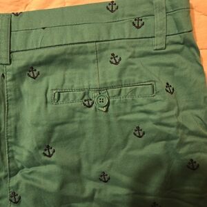 These nautical themed green shorts with cute embroidered anchors on them are made by British Khaki. These fisherman core style shorts are well made and in great shape. size 10 in US women's. thanks for looking