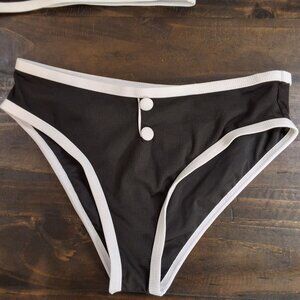 Contrast Binding Two-Piece Bikini Set With Button Accents Sz M Black/White