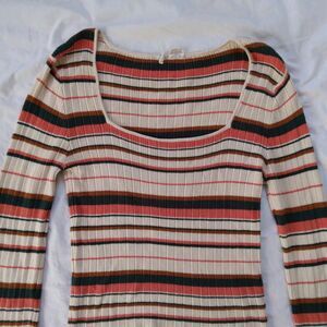 Y2K Sky and Sparrow Striped Long Sleeve Pullover Top Womens Juniors Size L.