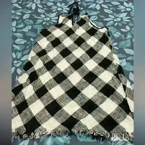 Anthropologie Cloth & Stone Black White Gingham Buffalo Check Fringed Dress M