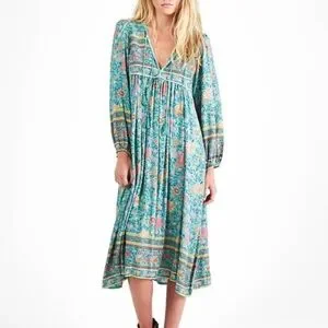 🤍Spell and the Gypsy folk town turquoise midi dress!