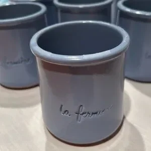 6 empty clay la fermiere yogurt pots. Blue Desired by crafters and bakers
