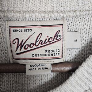 This light beige crewneck sweater from Woolrich features a relaxed fit and long sleeves, making it an ideal choice for comfort and warmth. The textured knit pattern adds a touch of style, perfect for layering during cooler days.