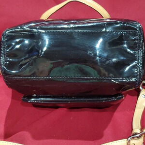 Coach shiny patent leather black and tan handbag or crossbody bag