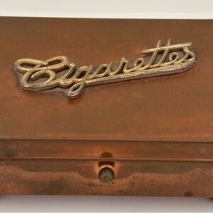 Elegant antique cigarette box. Features gold toned lettering. Perfect for collectors.