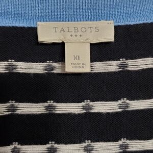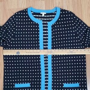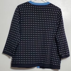 Talbots Xl 3/4 sleeves knit open front cardigan sweater polka dots black blue