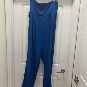Elegant blue sweetheart neckline wrap jumpsuit perfect for any occasion. Features a stylish design for a flattering fit. Size 16…. Pet free and smoke free home.
