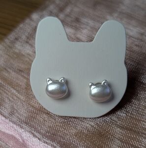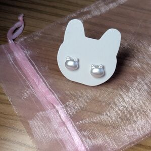 Gold + Pearl cat stud earrings kitten kitty acrylic NEW jewelry Girl Teen Adult