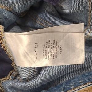 These Gucci jeans feature a classic light blue denim color with subtle fading for a stylishly worn-in look. Designed in an ankle cropped style, they offer a modern silhouette that pairs well with various outfits.