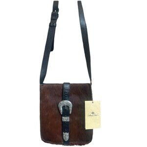 NWT! Patricia Nash Women's Leather Cavalino Cow Venezia Crossbody Bag Black
