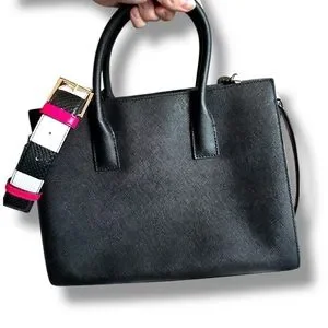 Elevate your style with the Kate Spade Black Leather Tote Bag. This elegant bag features a sleek black design, perfect for any occasion. The high-quality leather and chic tassel detail add a touch of sophistication to your ensemble.