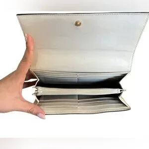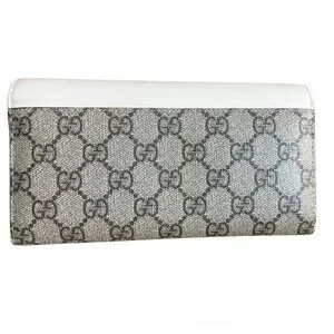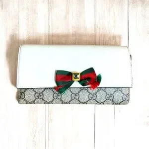 Gucci GG Supreme Continental Wallet in white, tan and red & green bow