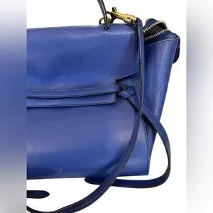 Reposhing this bag. Celine doesn’t make this bag anymore and I loved it, but ready to rotate it out for something new! Gorgeous blue color. Scuff marks and fraying zipper shown in photos. Good used condition. The mini is the largest size the belt bag comes in.