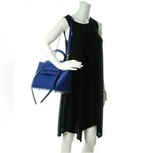 This chic tote is crafted of rich grained calfskin leather in blue. The bag features a leather strap top handle and an optional shoulder strap with gold brass clasps. The facing flap opens from an adjustable strap to a dark grey suede interior with room for your daily essentials or can be used as a stylish travel companion with the classic innovation of Celine!