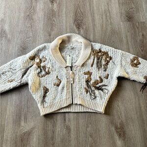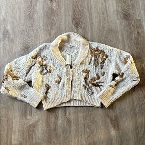 New Anthropologie x Pilcro Ivory Sequin Embellished Knit Cardigan Sweater Top