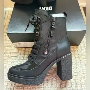 DKNY Women’s Toia Lace Up Zipper Combat Boots Black Size 7 New In Box