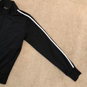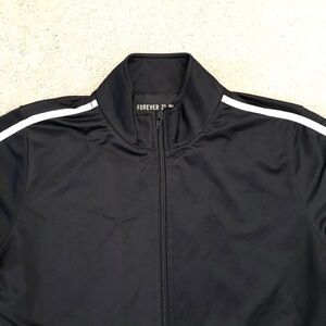 Forever 21 Sport Luxe Track Jacket Womens Medium Black White Stripe Zip Up