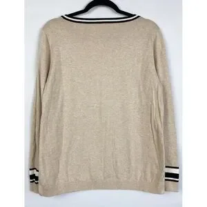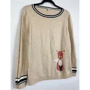 Talbots Womens 100% Cotton Fox Novelty Sweater L Tan Preppy Twee Crewneck