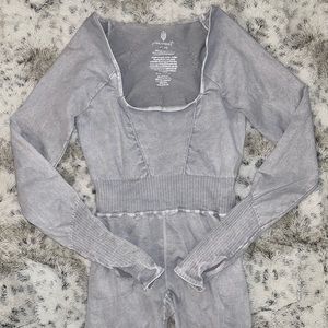 🆕 NWOT Free People Movement | Good Karma Long Sleeve Onesie | Ice Grey