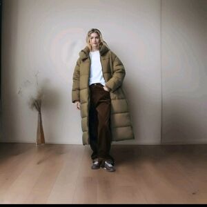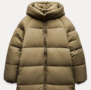 ZARA Women's Water&Wind Protection Long Anorak(Dark Olive, US L /EUR L)