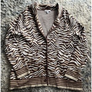 Isaac Mizrahi Live Knit Cardigan Jacket Blazer Sz 1X Animal Print Brown