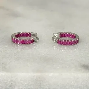 Sterling Silver Princess Pink Crystal Hoop Earrings