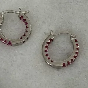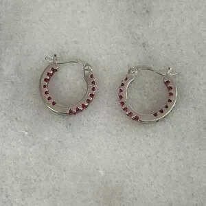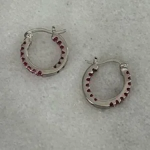 Sterling Silver Princess Pink Crystal Hoop Earrings Brand New
