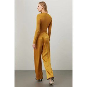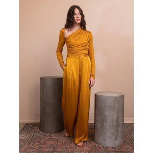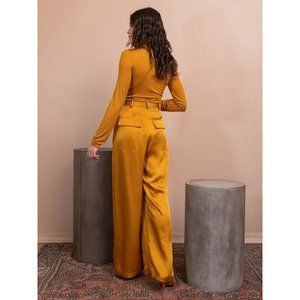 LAPOINTE Satin Pleated Pants in Yellow 2 Womens Wide Leg Trousers