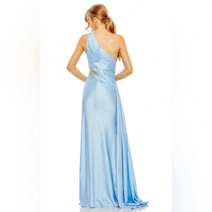 Mac Duggal 2210 - Powder Blue One Shoulder Satin Dress with Train Womens Size 2