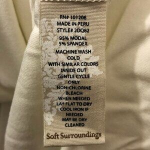 Soft Surroundings off white slouch front short sleeved t-shirt. It is size medium and measures pit to pit 20.5 inches and length is 24 inches. Good condition.