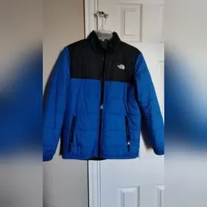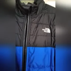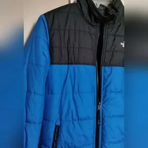 Stay warm and stylish with this blue and black jacket. Perfect for any occasion. Zipper closure. Functional pockets. Very soft and warm. Size Boys Large 14/16. Very good condition!