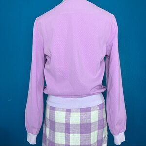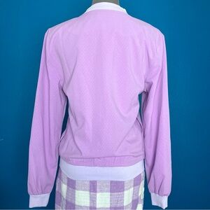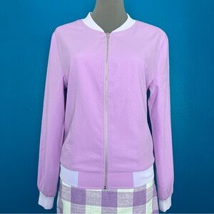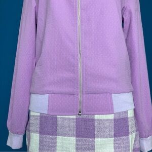 New without Tags! A superb summer pastel lilac color in a classic bomber jacket. Gingham check skirt also available!