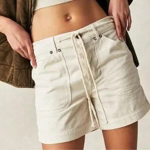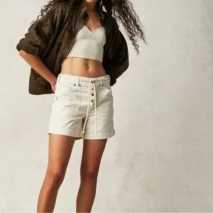We The Free Second Chances Pull On Shorts. Color: White Dreams (White). Size: Small, low to mid-rise, drawstring waist, button fly. 100% Cotton.