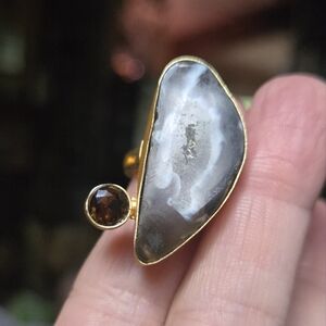 Agate & citrine sterling & gold brushed Ring sz7 adjustable open design