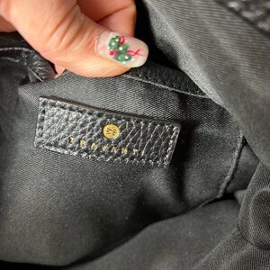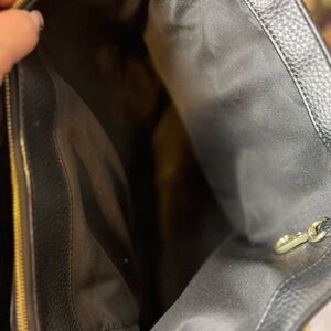 Travanti Large Black Faux Leather Tote Commuter Bag, gold hardware, 15x12x6