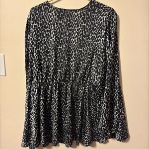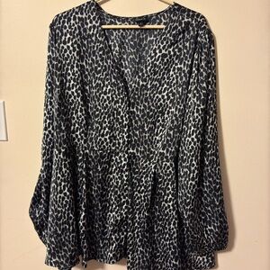 Satin cheetah print blouse. Great for work or a night out with the girls .