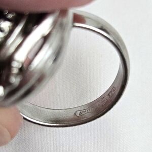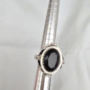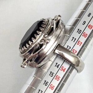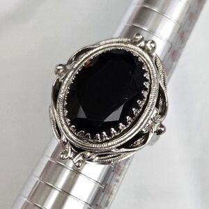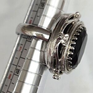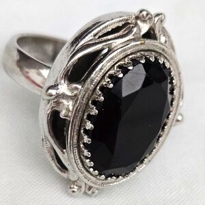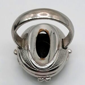Vtg. WHITING & DAVIS Silver Ring with Ornate Design and Large Onyx Stone 6.5