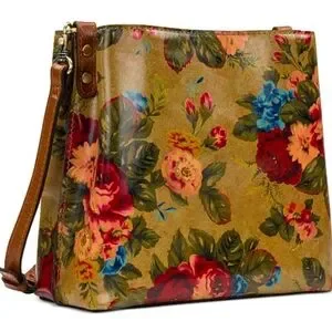 PATRICIA NASH Ledra Floral Tan Leather Strap Bucket Crossbody Bag